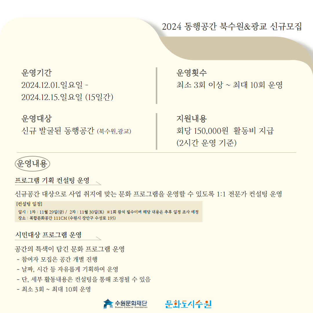 2024 문화도시 동행공간 북수원&광교 권역 신규 모집 안내
